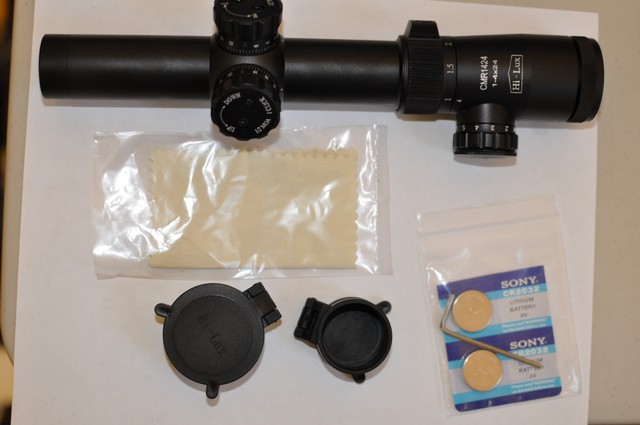In the box, the Leatherwood CMR scope comes with the basics... A short user's manual, an Allan wrench for adjusting the "ZRO-LOK" turret system, a cleaning cloth, 2x CR2032 Batteries, and a set of flip-up covers.GeneralThe overall feel of the scope is good; it has a nice weight to it and feels durable. All of the adjusters have firm indexing, so you can tell when you are tuning them; and they require a bit of force to actual make the adjustments.