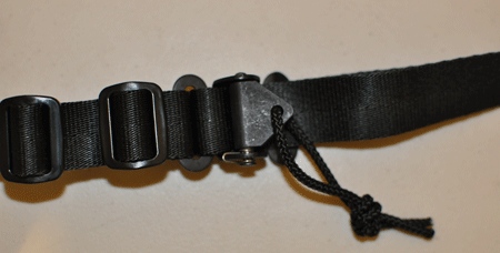 The sling is equipped with a quick release buckle that allows for quick tightening of the sling by simply pulling on the loose end of the sling, and quick extension by simply pulling on the buckle lanyard. The quick release buckle is made out of metal and has a relatively strong return spring so it will stay tight and not slip while moving.